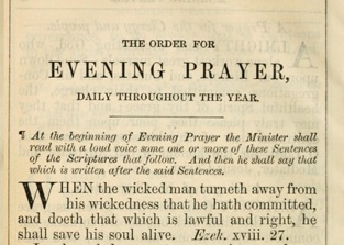Daily prayer according to the Church of England Prayerbook. The lectionary used passes through the whole Bible each year (without any ommissions), including the New Testament twice. The Psalms are as per the book of 1662 but are currently drawn from the ESV (as are the other Daily Bible Readings). The Litany follows on Wednesdays, Fridays and Sundays. The readings are not replaced with seasonal propers.